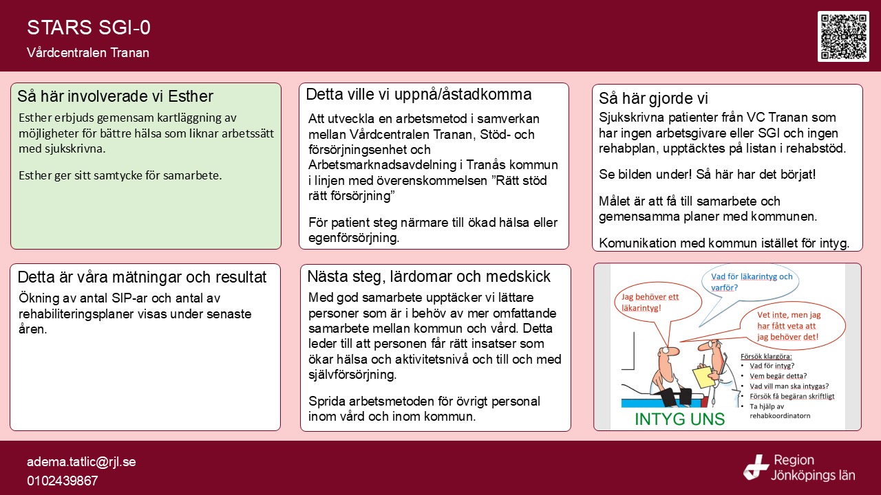 - Vilket förbättringsarbete kan på ett enkelt sätt användas och skapa nytta för andra verksamheter i regionen.